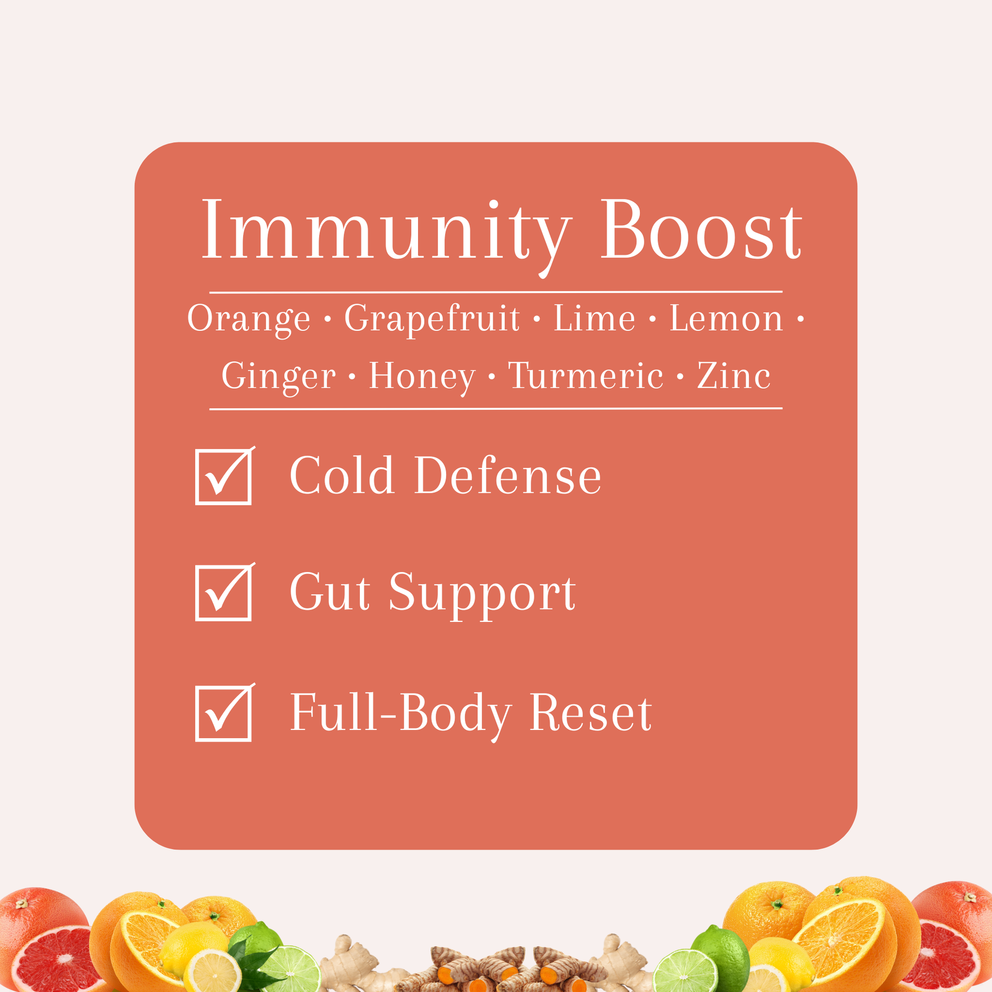 • Immunity Boost – citrus, ginger, and turmeric blend